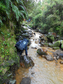 A little way above the track junction to Kapuni Lodge we met another party coming down the mountain who kindly offered some advice. It is often hard to assess the quality of advice provided by other parties when you briefly meet for 45 seconds or so. There is after all a continuum of advice received in such circumstances ranging from never leave the house paranoia to quality advice all the way through to the she'll be right gung-ho. Therefore it is of course useful to assess how any advice provided might apply to your own party or trip. On this occasion I was advised of treacherous snow and ice filled gullies, "People have here died you know", and that I would drown the survivors in the streams when returning on the lower track with some rain in the forecast.