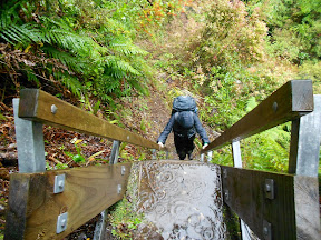 With the arrival of daylight we timed our exit of the hut perfectly. It started to rain the moment we stepped out the door. The track appeared to have a lot of recent maintenance and was nowhere near as muddy as I recalled from a previous visit. Without the warmth of the sunshine, we walked faster, rested less and made good time back to Dawson Falls via the Lake Dive Lower Track. Thoughts of extending the trip around the Dawson Falls loop walk were quickly dashed with the kind offer of a hot shower at Konini Lodge.